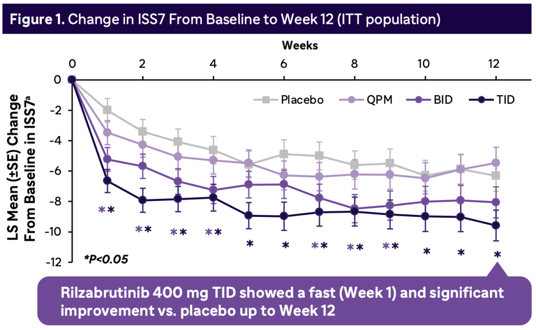 在II期RILECSU临床试验中,该药在瘙痒严重程度(ISS7)和荨麻疹活动度(UAS7)评分方面表现出快速且显著的改善。