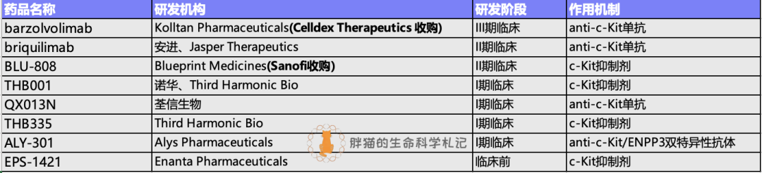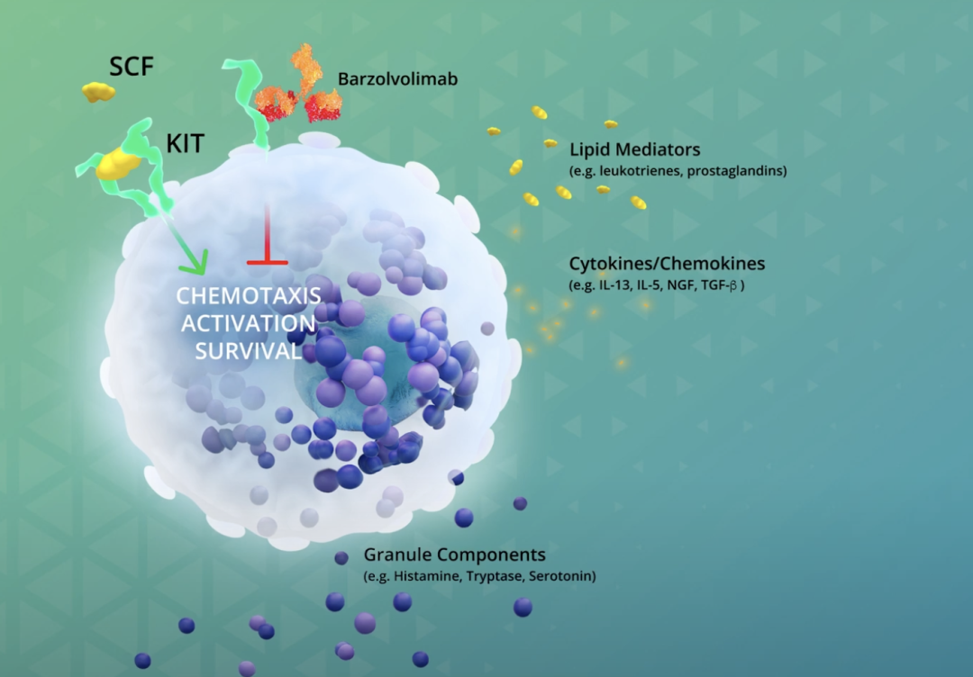 这其中,值得提上一嘴的是Celldex公司开发的c-KIT靶向的抗体药物Barzolvolimab(CDX-0159)。