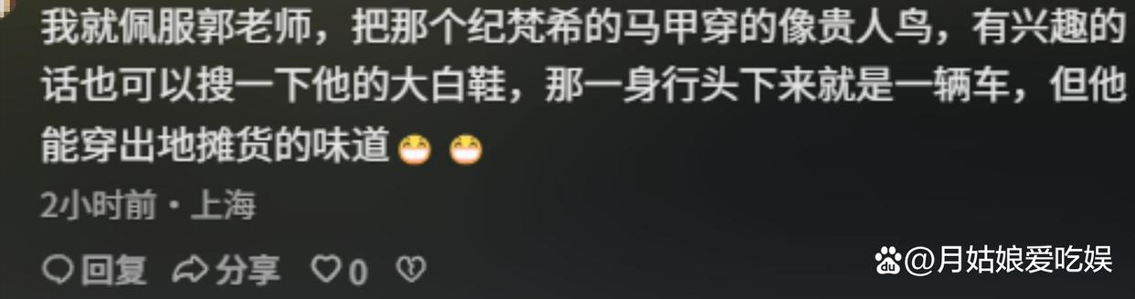 他穿着短袖套羽绒马甲,黑墨镜、帽子、口罩全副武装,活像个时尚界的“郭导”。一进剧场,口罩帽子一摘,气场全开。